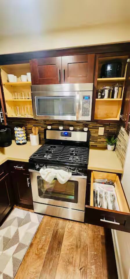 Our guests will enjoy privacy of having the entire 1 bed 1 bath apartment to themselves. To abide by local legal requirements, you may be asked to complete a secure verification portal by providing a copy of your official government-issued photo ID, confirming your contact information and sharing the purpose of your stay. The information is collected for screening and verification only and is not stored or used for any other purposes. By making a reservation, you acknowledge that you may be required to provide a copy of a valid government-issued ID prior to check-in. You understand that your check-in instructions might be withheld until you have successfully completed verification steps in our guest portal.