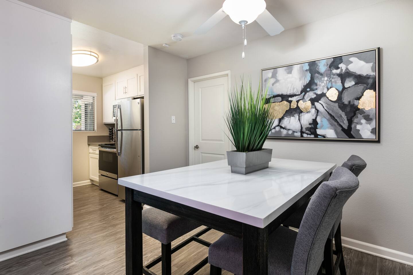 📶 1 Gig Fast WiFi & Smart TV for seamless work/streaming 🛏️ 1BD/1BA sleeps 4 (queen bed + sofa bed) 🍳 Full kitchen w/ appliances & cooking essentials ❄️ Central air & heating for year-round comfort 🛋️ Private patio for outdoor relaxation 🚗 Free reserved parking 📍 4.4 mi to CLU, walking distance to FSAC, 5.6 mi to Proactive Sports, 3.8 mi to Amgen A convenient home away from home for family visits, athletic training, recovery, or work from home professionals.