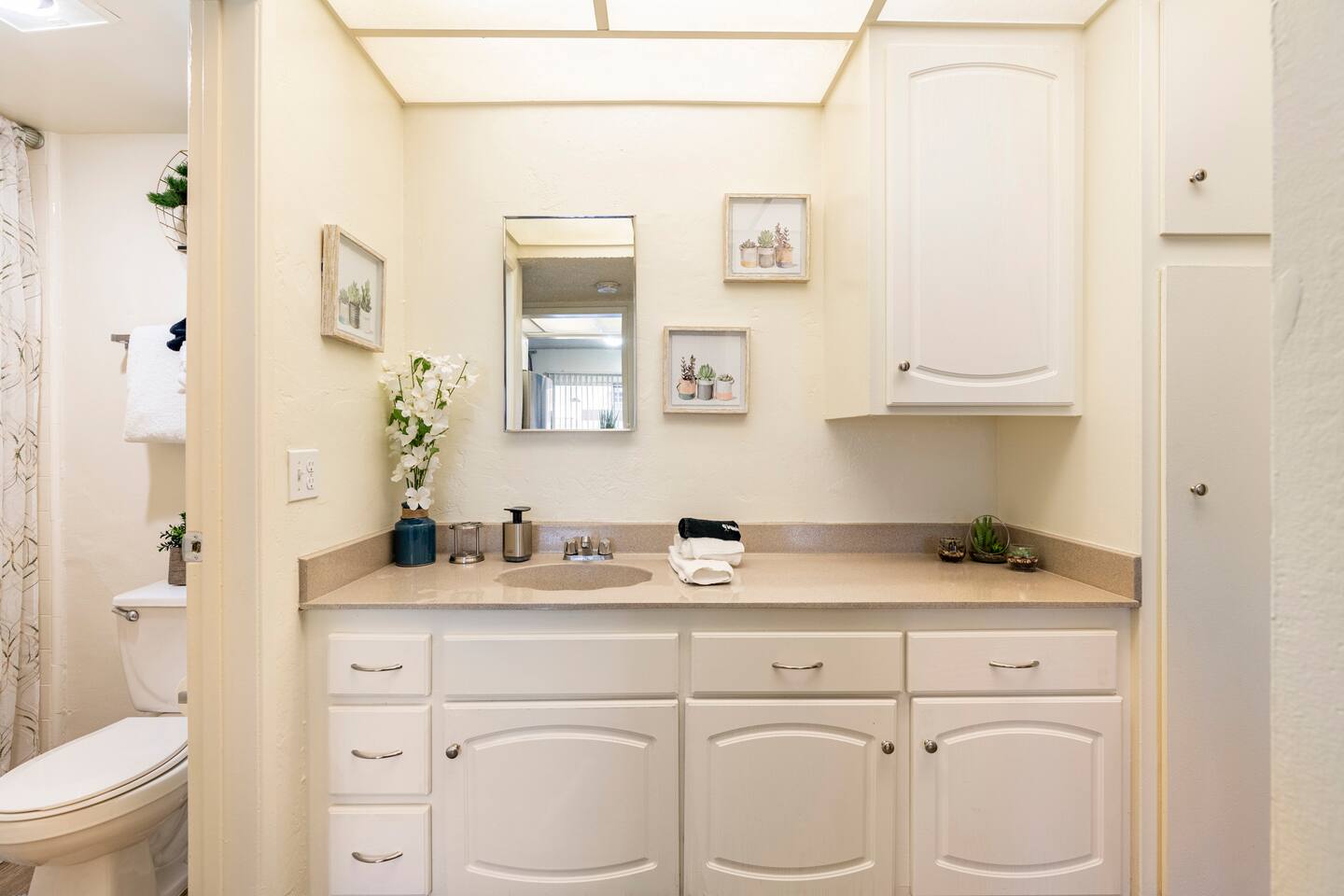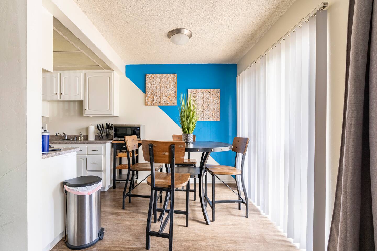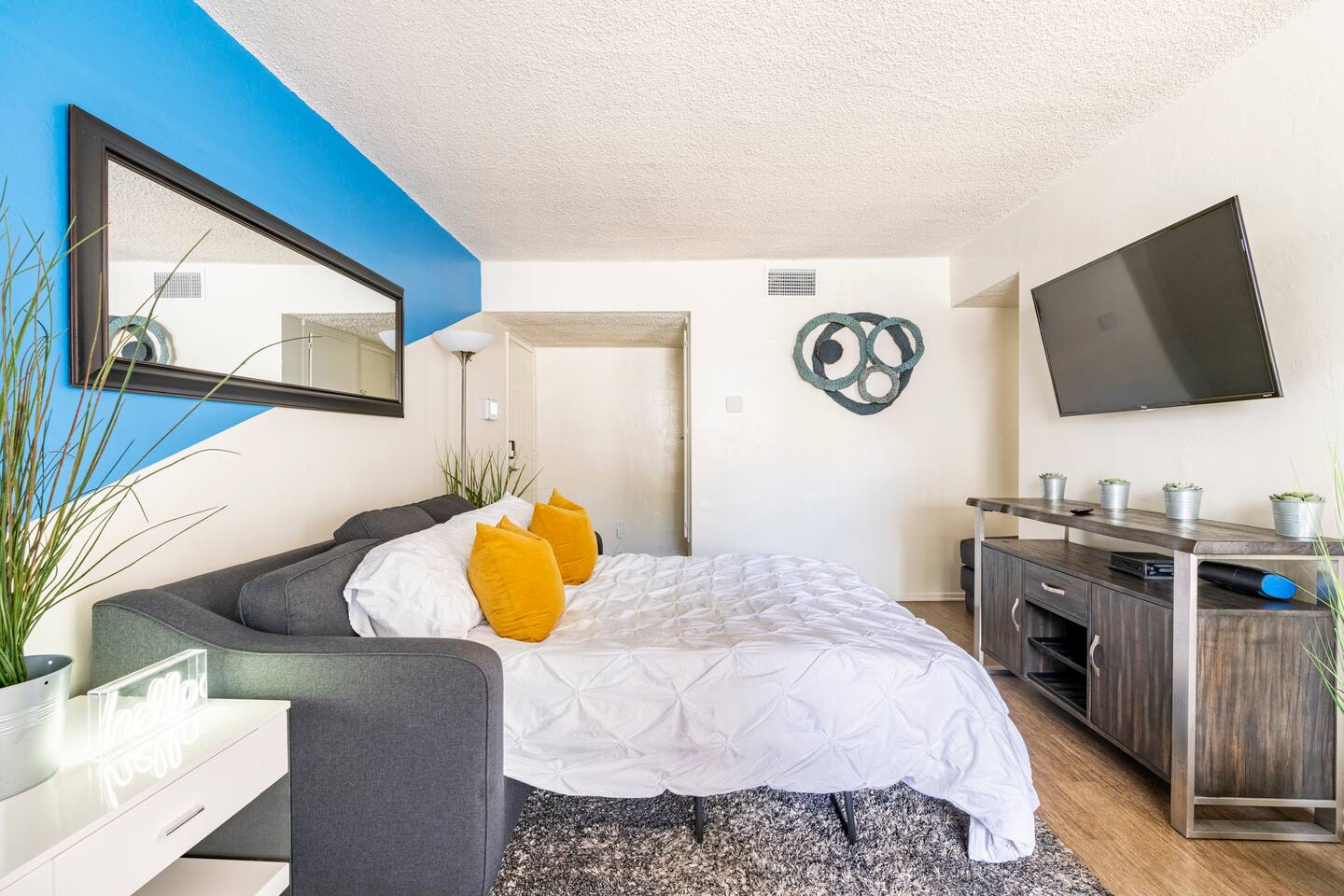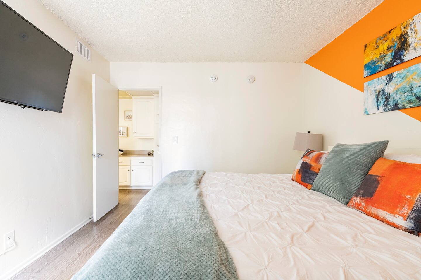 📶 1 Gig Fast WiFi & Smart TV for seamless work/streaming 🛏️ 1BD/1BA sleeps 4 (queen bed + sofa bed) 🍳 Full kitchen w/ appliances & cooking essentials ❄️ Central air & heating for year-round comfort 🛋️ Private patio for outdoor relaxation 🚗 Free parking (2 dedicated spaces) 📍 5.1 mi to CLU, 3.6 mi to FSAC, 8.6 mi to Proactive Sports, walking distance to Amgen only a half mi A convenient home base for family visits, athletic training, recovery, or work from home professionals.